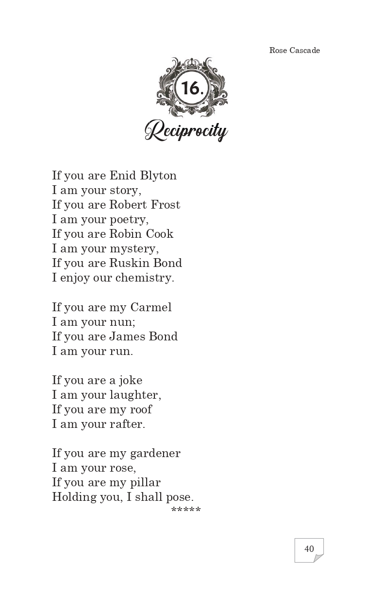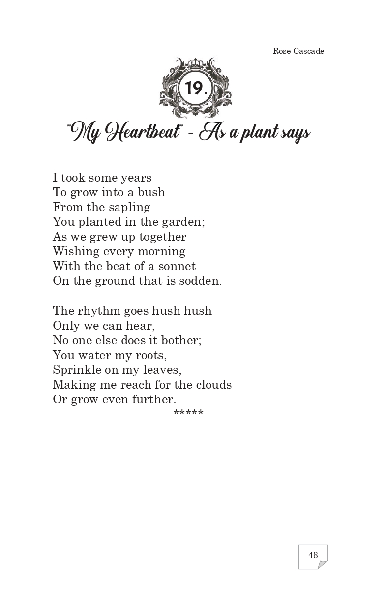 This book is meant to take you away from work, not permanently, but long enough to breathe. Through monologues flowing with rhyme and rhythm, I have chosen one of the most beautiful creations on Earth — roses — as companions in this reflective journey.